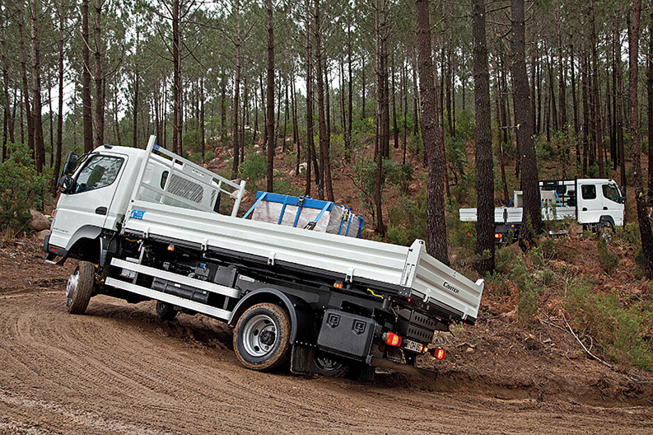 Ein Fünfgang-Schaltgetriebe mit Joystick-Schalthebel in der Armaturentafel übernimmt serienmäßig die Kraftübertragung. Alternativ kommt das vollautomatisierte Doppelkupplungsgetriebe Duonic zum Einsatz. Das erste Getriebe dieser Art in einem Leicht-Lkw ist auf Wunsch für fast alle Modelle verfügbar und Serienstand beim Canter mit 8,55 t Gesamtgewicht. Duonic eignet sich besonders für schwieriges Terrain wie etwa auf Baustellen, bei dem sich der Fahrer auf sein Umfeld konzentrieren muss. Obendrein gehört zu Duonic eine Kriechfunktion wie bei einer Wandlerautomatik. Sie punktet im Stopp-and-Go-Verkehr und ermöglicht Rangieren mit niedriger Geschwindigkeit allein über die Betätigung des Bremspedals.