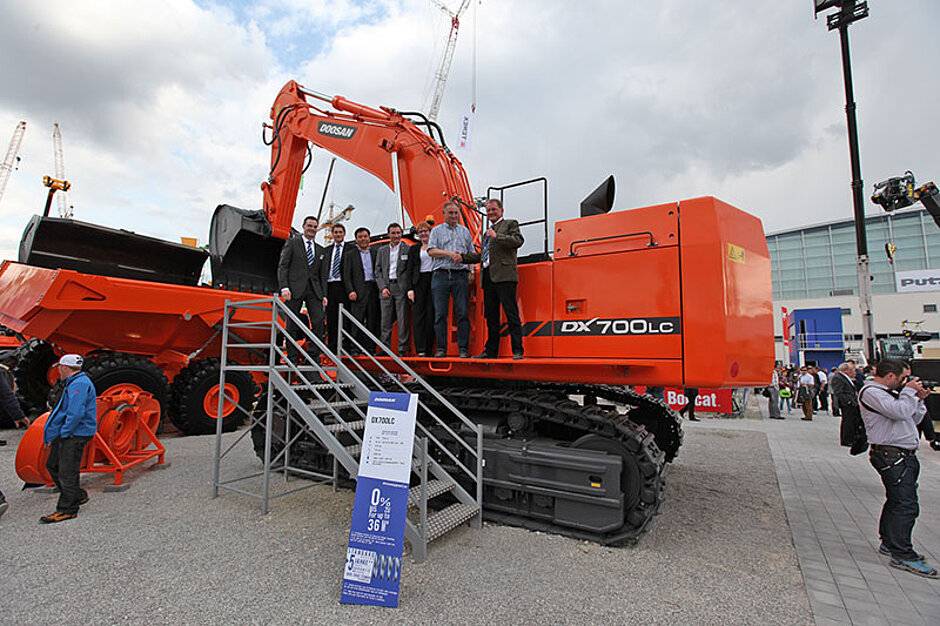 Durch die Unterzeichnung des Kaufvertrags über den DX700LC wurde eine bislang bereits erfolgreiche Messepräsenz am zweiten Messetag zusätzlich gekrönt. Die große Maschine soll schon bald nach einer – den künftigen Anforderungen entsprechenden – Umrüstung der Standardausführung bei Kafril & Reinwald Spezialabbruch aus Hohburg-Großzschepa bei Leipzig zum Einsatz kommen. Das Unternehmen wurde 2011 gemeinsam von den mittelständischen Unternehmen Kafril Abbruch und Reinwald Entsorgung gegründet. Seit über 20 Jahren sind beide Firmen in den Bereichen Abbruch, Erdbau, Altlasten- und Schadstoffsanierung tätig. Groß war die Zufriedenheit auf der Bauma nicht nur bei den Verantwortlichen von Doosan, sondern auch bei Unternehmer Jens Karnahl von Kafril & Reinwald sowie dem verantwortlichen Doosan-Händler Ziesmann Baugeräte aus Torgau. Jens Karnahl erwarb damit seinen zweiten Kettenbagger von Doosan. Zuvor verrichtete bereits ein mittelgroßer DX140LCR seinen Dienst im Maschinenpark des Unternehmens. Die Solidität dieses Modells hätten neben dem generellen Vertrauen in die Technologie der Doosan-Bagger und in die umfassende Betreuung durch den Händler zur jetzigen Kaufentscheidung geführt. »Ich war bereits zweimal persönlich mit meiner Frau und Händler Roland Ziesmann zu Besuch bei Doosan in Südkorea und war beeindruckt vom Land und seinen Menschen. Vor allem die Zielstrebigkeit und Effizienz, mit der man bei Doosan seine Ziele verfolgt, hat mich zutiefst überzeugt.«, führte Karnahl aus.