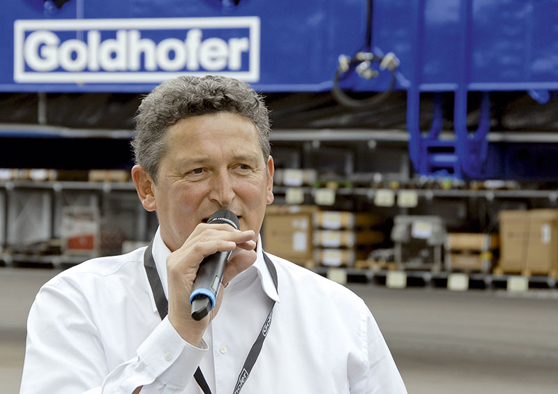Einmal mehr zeigt Goldhofer fortschrittlichste und zukunftsweisende Transporttechnik. Die Leistungs- und Nutzungsgrenzen unserer Transportsysteme werden neu definiert und setzen die Messlatte in der Schwerlastbranche nochmals höher«, sagt Goldhofer-Vorstandsvorsitzender Stefan Fuchs.