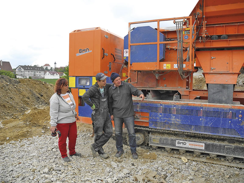 Nach dem guten Anlaufen des Geschäftes und einigen Anmietungen der Brecheranlagen von BMD-Heidelberg wurde recht schnell eine eigene Anlage gekauft. Da sich das Geschäftsmodell des Lohnbrechens für kleine bis mittlere Mengen von Bauschutt als Marktlücke herausgestellt hat, arbeiten mittlerweile zwei BMD-Anlagen bei dem Geschäftsmann. Eine haken- und eine raupenmobile Anlage werden durch ein Equipment von Lkw, Bagger, Radlader und Containern ergänzt, um an jeder Abbruchstelle perfekten Service leisten zu können. Als Familienbetrieb wird der Service des Lohnbrechens mit einem geringen Stundensatz als Komplettservice angeboten. Neben der Möglichkeit kleinere Mengen Bauschutt kostengünstig zu verarbeiten, werden auf Wunsch auch alle restlichen Abfälle der Baustelle fachgerecht entsorgt, sodass am Ende für den Auftraggeber keine weiteren Entsorgungsarbeiten zu erledigen sind.»Ein Stillstand der Anlage kommt sehr selten vor«