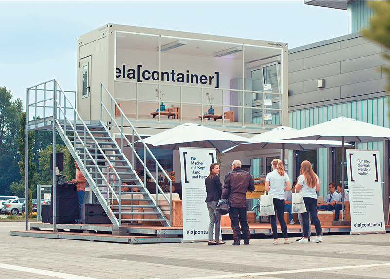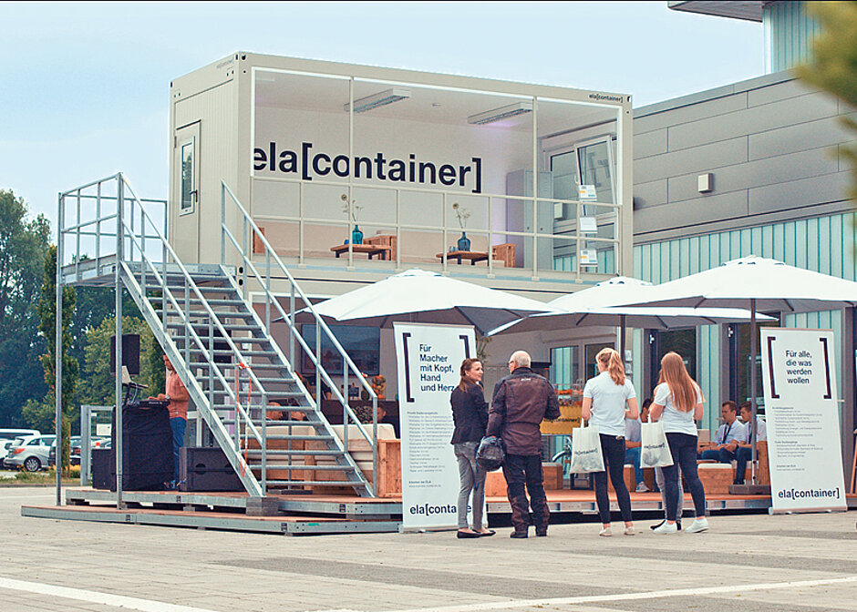 Erst kürzlich nutzte ELA die eigenen Container selbst auf einer Jobmesse, um sich als attraktiver Arbeitgeber zu präsentieren. Eine ELA-Landschaft mit zweigeschossiger Anlage und großer Terrasse inklusive Lounge-Möbeln und Smoothie-Bar zog die Aufmerksamkeit der Besucher auf sich. §