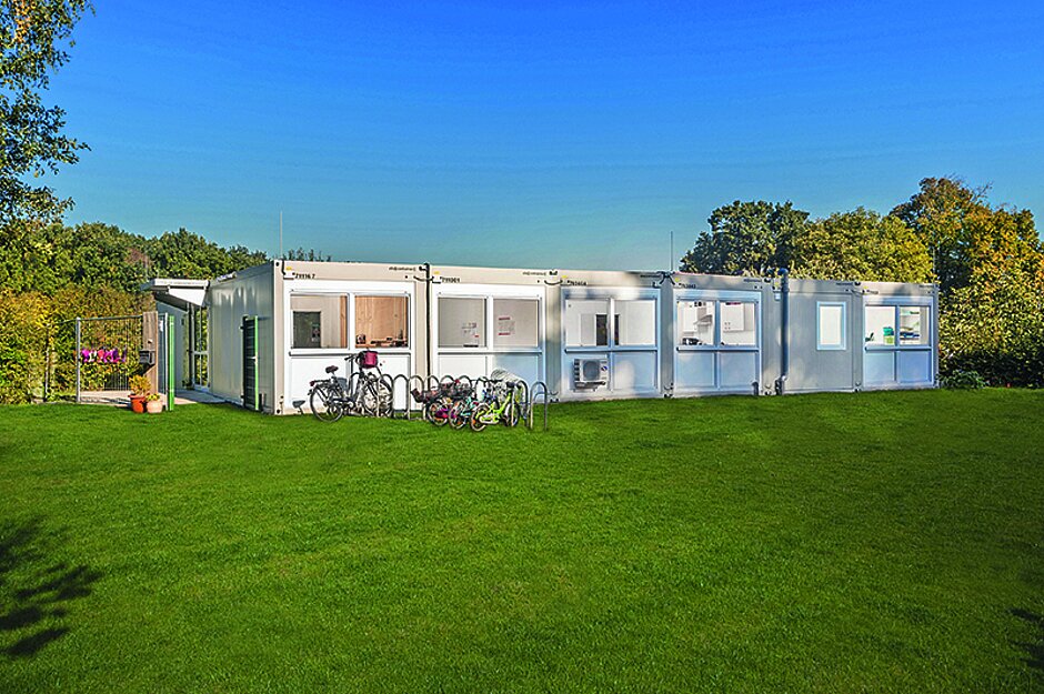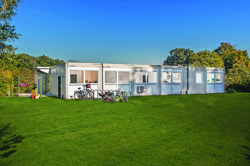 Um den Raumbedarf zu realisieren, sind 14 ELA-Premium-Container und drei ELA-Qualitäts-Allrounder ebenerdig kombiniert. Auch das ausschreibende Architekturbüro WBR zeigte sich zufrieden. Architekt Hennig Rake lobt den emsländischen Familienbetrieb ELA: »Der Ablauf war unkompliziert und zügig. Das Angebot wurde ebenfalls kurzfristig erstellt und auch die Lieferung durch die werkseigenen Lkw und die Montage gingen problemlos vonstatten.« t