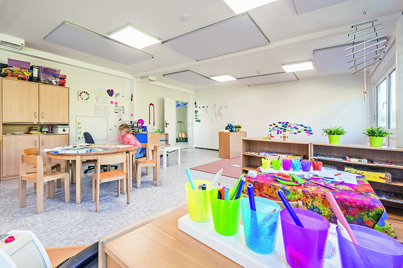 Zur technischen Ausstattung gehören Außentüren mit Panikschlössern, hochgesetzte Türdrücker, Rauchwarner und eine Fluchtwegbeschilderung. Für zusätzlichen Komfort sorgen eine Klimaanlage und Akustik-Deckenpaneele, für noch mehr Sicherheit ein Fingerklemmschutz an den Türen.