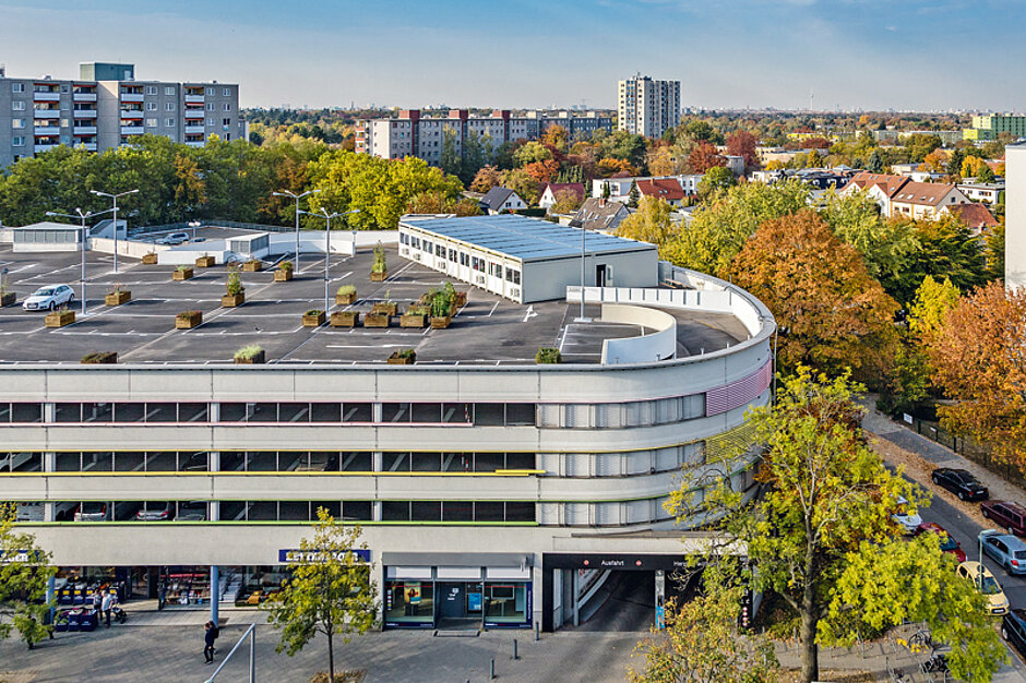 Besprechungs- und Aufenthaltsräume, Büros, Empfang, Druckerraum, Archiv und Sanitärbereich – ein umfangreiches Projekt wie die Center-Modernisierung benötigt die passende Infrastruktur. Auf dem Parkdeck bot sich genug Platz, um eine Projektzentrale aus ELA-Containern einzurichten. »Per Autokran wurde die komplette Anlage auf das Dach der Gropius Passagen gehoben«, erklärt ELA-Area-Sales-Manager Marc Richter. »Danach erfolgten die Montage der Module und die schlüsselfertige Übergabe an den Kunden.«
