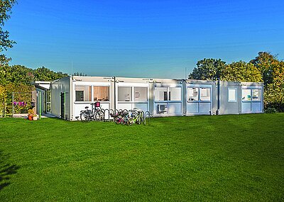 Aufgrund der Corona-Situation musste die Belegung im Hauptgebäude reduziert werden. Mit der Lösung von ELA-Container stehen nun vier zusätzliche Therapieräume zu je 38 m² Fläche zur Verfügung. Insgesamt umfasst die Anlage aus neun ELA-Büro-Containern 160 m². Die neuen Räume bieten Platz für je neun Patienten und einen Therapeuten und werden für Psycho-, Ergo- und Entspannungstherapie genutzt. »Die Räume entsprechen damit den Vorgaben des Robert-Koch-Instituts«, erklärt André Pieper-Christensen, der technische Leiter der Seepark-Klinik.
