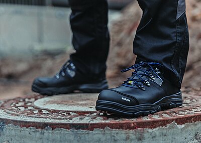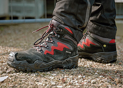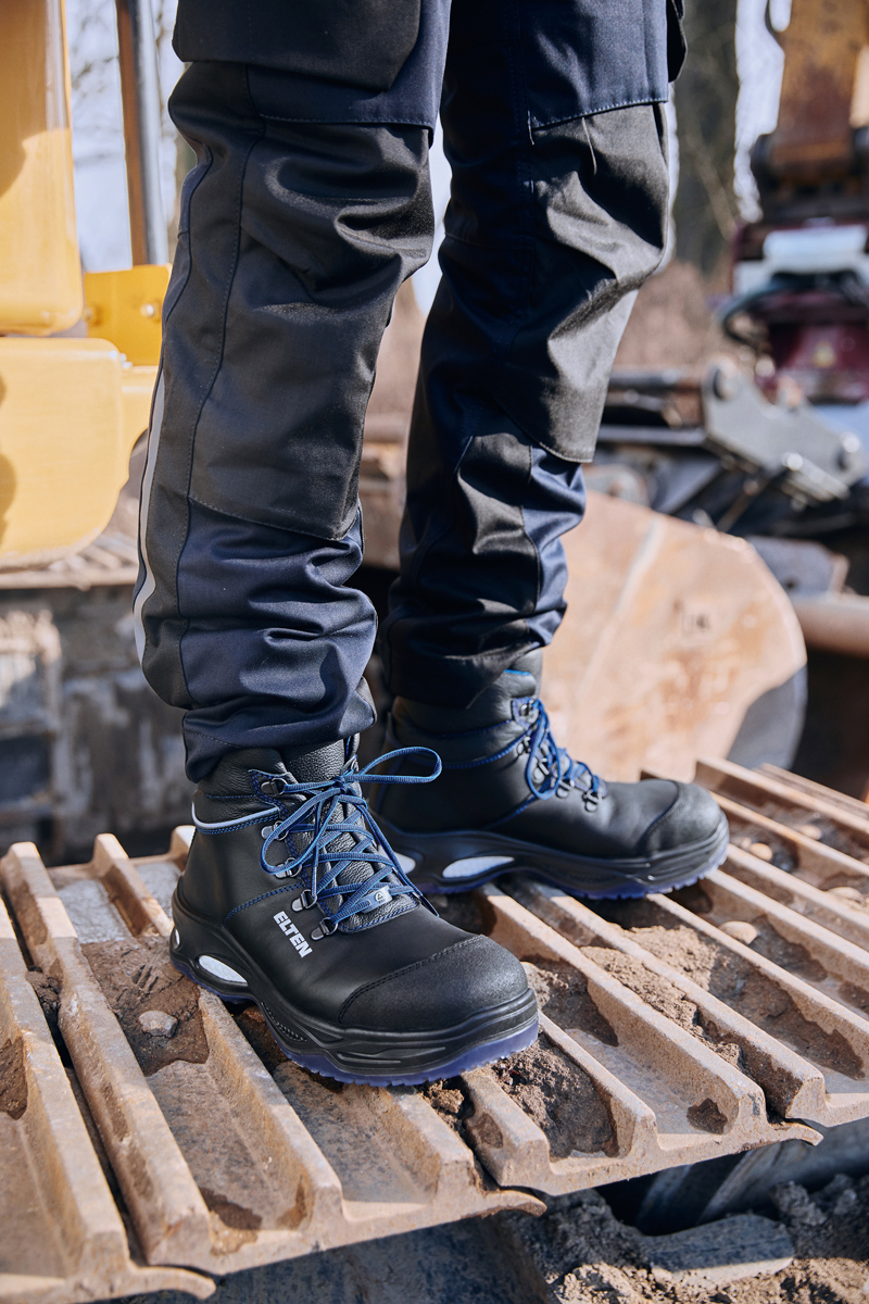 Von dem Fußschutz mit der speziellen Sohlentechnologie profitieren auch Männer, für die Elten eine vielfältige Auswahl passender Modelle für Jobs im Hoch-, Tief-, Straßen- oder GaLaBau bietet. Mit einem Sohlenkern aus »Infinergy« ist etwa der »Milton Mid ESD S3« ausgestattet, der überdies über seitlich angebrachte Reflexmaterialien verfügt. t