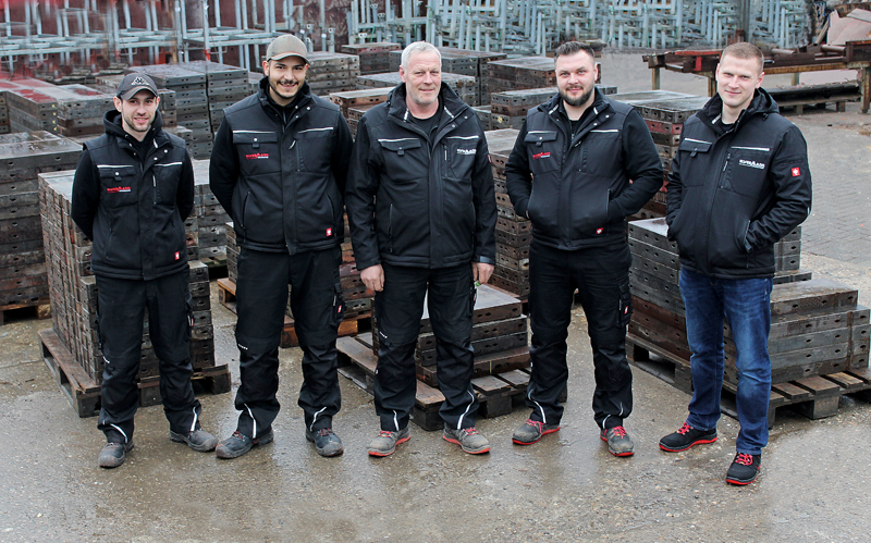 Die Firma Frank hatte sich ursprünglich auf die Lackierung und Instandsetzung von Fahrzeugteilen spezialisiert. Seit rund vier Jahren arbeiten Elvermann und Frank im Bereich der Renovierung und Generalüberholung von Rahmenschalungen zusammen, vorwiegend Stahlrahmensysteme wie Paschal-Raster und -Logo. Dabei werden die Schalungselemente von Bauunternehmen oder dem Elvermann-Mietpark gereinigt oder gesandstrahlt, kleinere Richt- und Schweißarbeiten übernommen, Elementrahmen lackiert sowie bei Bedarf auch mit neuer Schalhaut belegt und verfugt. Um den gewohnt hohen Anspruch an die Mietparkqualität bei EL-Props-Deckenstützen und Baugeräten aufrecht halten zu können, unterstützt Frank seit drei Jahren die Elvermann-Rückgabenabteilung in Sachen Reinigung und Instandhaltung von Mietrückläufern. t
