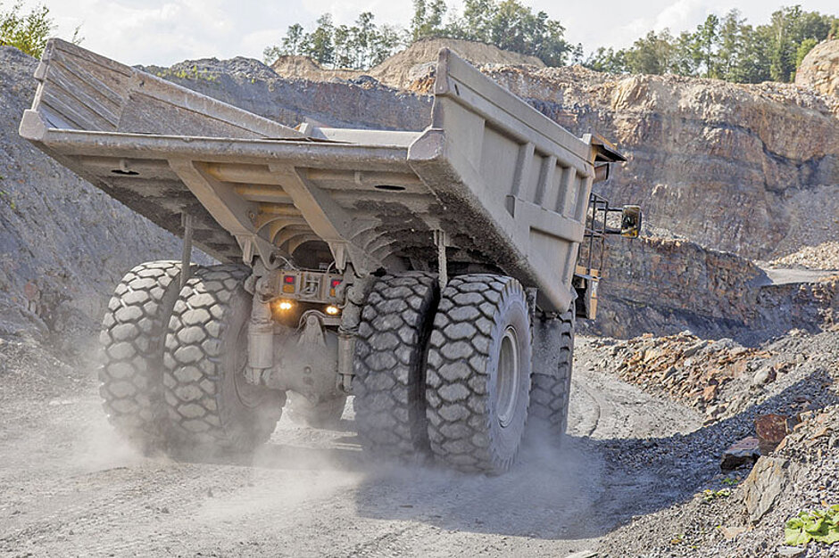Im Piesberg müssen die Reifen zeigen, was sie können. Dazu Schmidt: »Die Belastung für die Reifen ist nicht nur aufgrund des Gesteins hoch. Zwar sind die Rundlaufstrecken mit 400 m bis 600 m eher kurz, jedoch haben die Muldenkipper beladen ein Gesamtgewicht von bis zu 110 t und beachtliche Steigungen zu bewältigen. Das fordert auch die Reifen.« Die Fahrzeuge laufen im Steinbruch bis zu 16 Stunden täglich in bis zu zwei Schichten. Zu Beginn waren die Fahrer der Muldenkipper durchaus skeptisch, denn die Reifen spielen auch für die Fahrzeugsicherheit eine wesentliche Rolle. Bereits nach kurzer Zeit konnten die gute Traktion, das stabile Fahrverhalten und der hohe Komfort der Reifen sie überzeugen.Gute Beratung und schneller Service