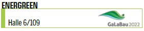 Vor diesem Hintergrund blicken das Energreen-Team sowie die Vertriebspartner äußerst positiv gestimmt auf die GaLaBau: »Eine tolle Gelegenheit für uns, mit einem kompetenten Fachpublikum in Kontakt zu treten, uns auszutauschen und unsere Technik vorzustellen«, so Kemkemer weiter. Es handle sich schließlich um die Leitmesse für Kommunaltechnik und damit um einen der wichtigsten Termine im Energreen-Messekalender.
