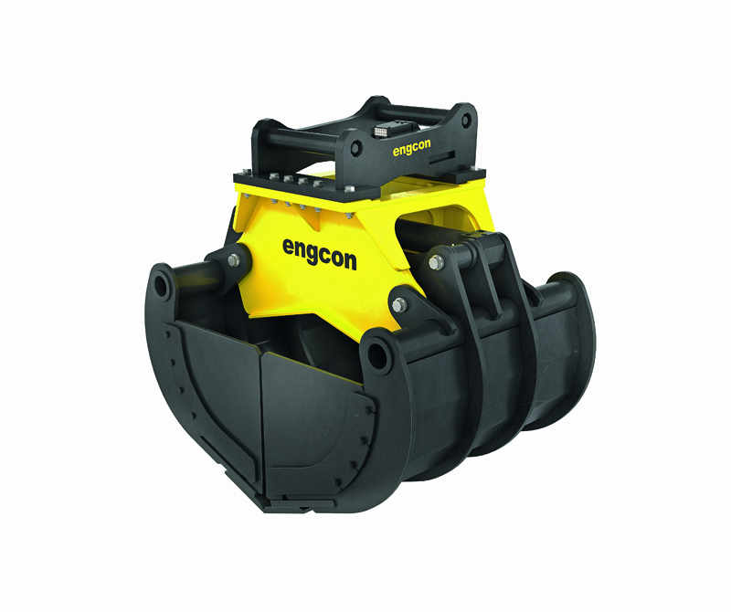 Wie bisher ist die Halterung verschraubt und für den Anschluss an Engcons automatische Hydraulikkupplung EC-Oil vorbereitet. Alle Verbindungen verfügen über Spreizmuffen, um das Spiel zu minimieren. Die neuen Stein- und Sortiergreifer haben geschraubte Schneidmesser für einen unkomplizierten Austausch und sind für den Einbau von Baggerzähnen vorgerüstet. Die neue SK-Reihe wird in sechs verschiedenen Größen für Bagger von 1,5 t bis 33 t erhältlich sein. §