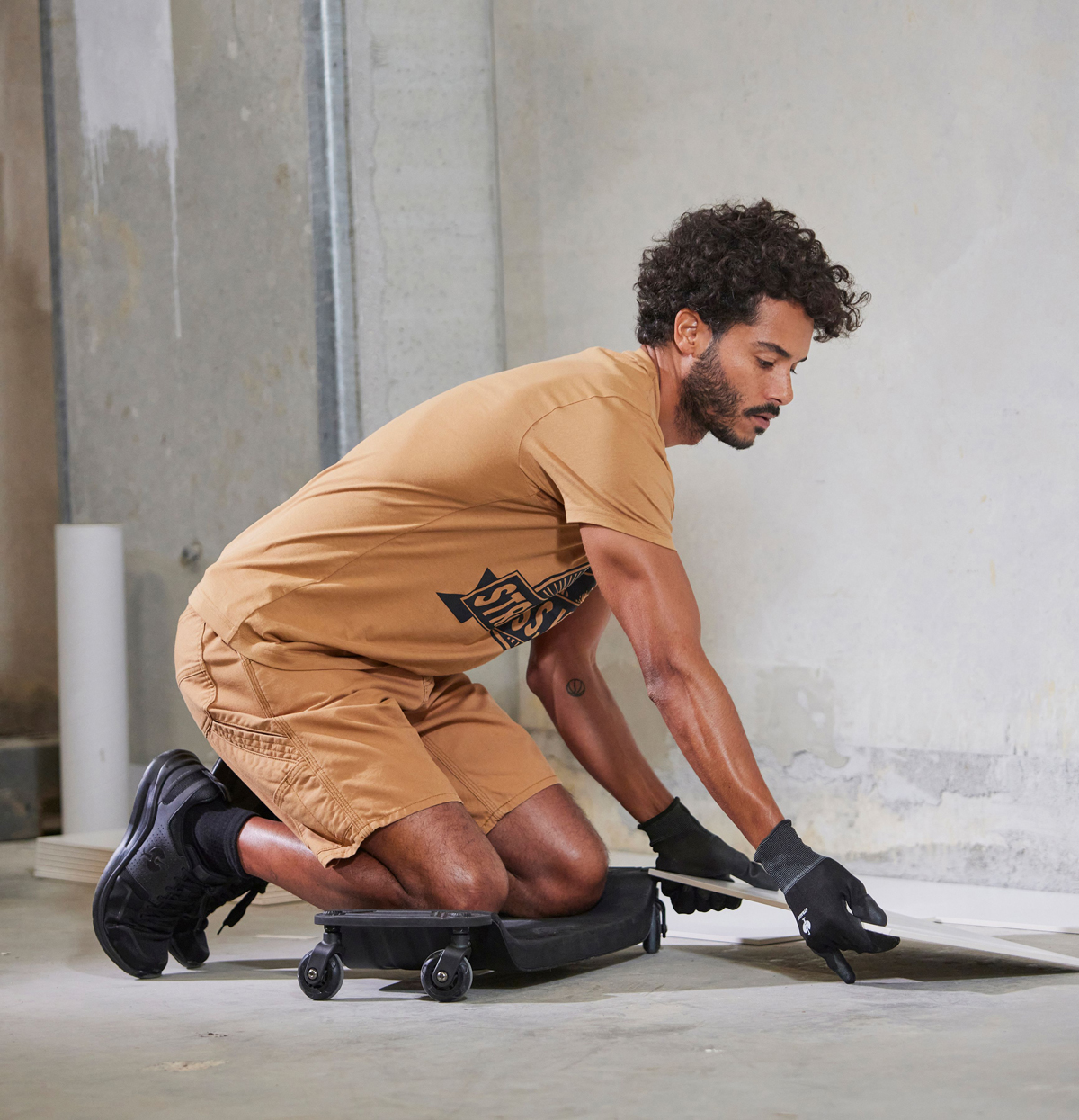 Bequem und entlastend knien und dabei noch zügig, wendig und ermüdungsfrei arbeiten: Das ist die Idee des e.s. Knee Board Pro-Comfort. Statt ständig auf den Knien zu rutschen, aufzustehen und sich wieder hinzuknien, können Arbeiter mit der innovativen Kniefläche einfach kurz rüberrollen – und dabei jede Menge Zeit und Energie sparen.