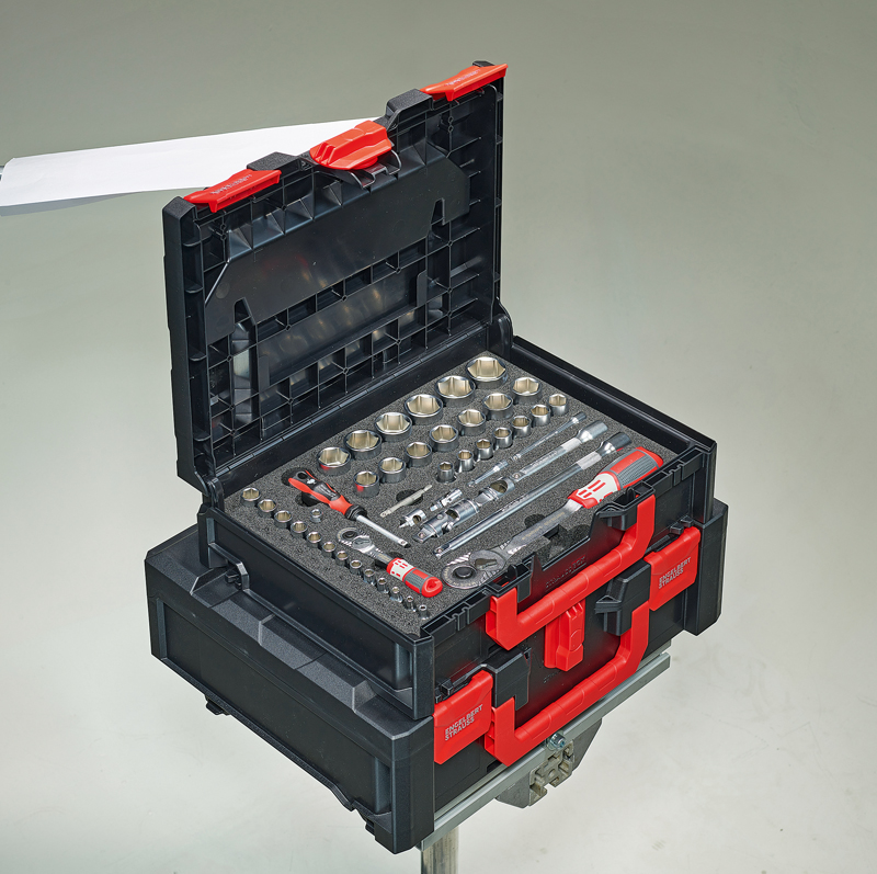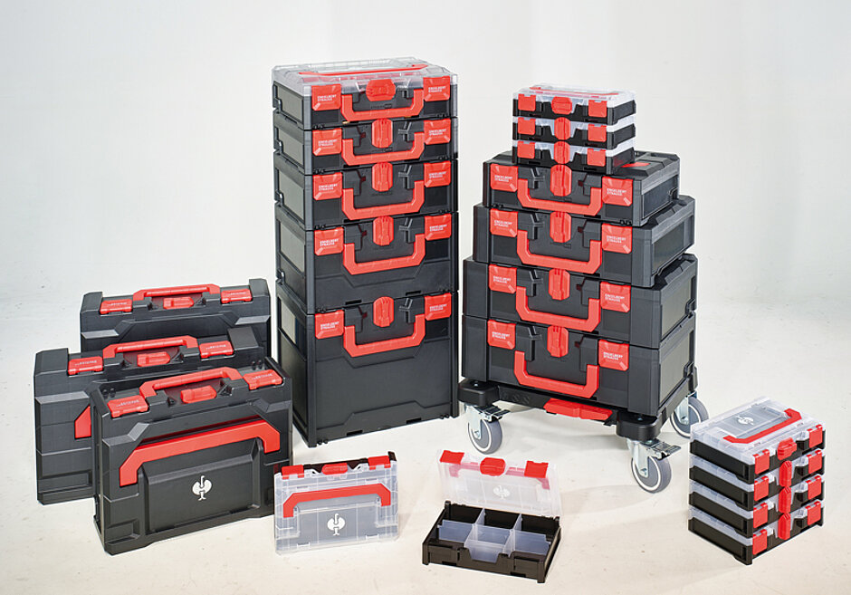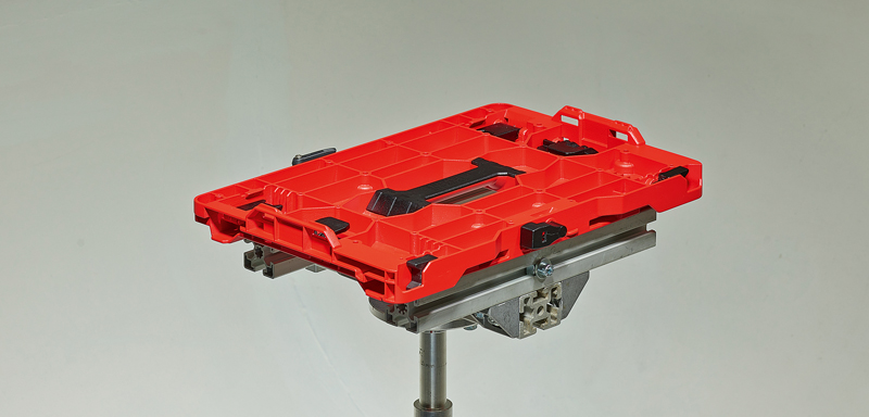 In den »Straussboxen« bleibt überdies auch alles griffbereit: Einmal aufeinander gestapelt, können Nutzer aus jeder beliebigen Box das benötigte Werkzeug entnehmen, ohne den Turm vorher abbauen zu müssen. Das spart in der täglichen Arbeit jede Menge Handgriffe und Zeit. Mit der Adapterplatte kommen die Werkzeugkoffer anderer Hersteller einfach on Top auf den »Straussbox-Turm«. Das sorgt für Flexibilität in der täglichen Arbeit und eröffnet dem Anwender die Möglichkeit, alles individuell einzurichten. t
