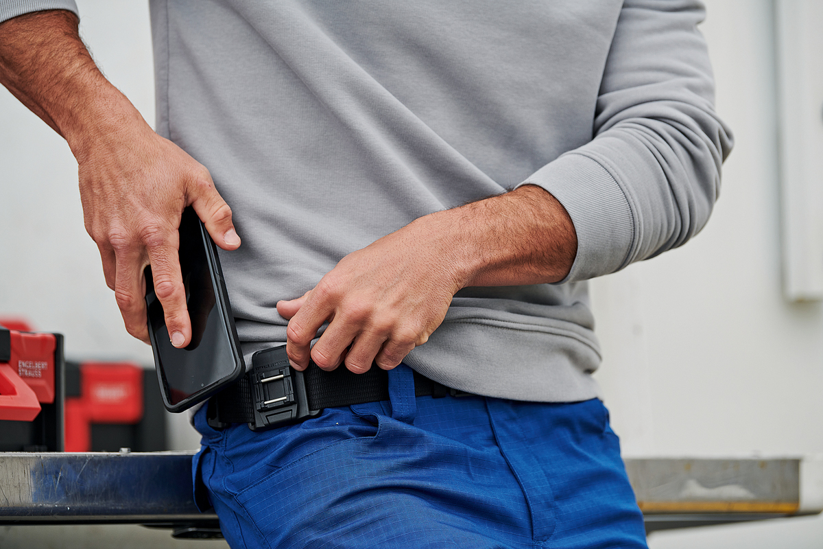 Ähnlich einfach soll sich das An- und Abziehen der Taschen über den Haftverschluss der Short gestalten – auch hier können die Träger frei entscheiden, welche Werkzeuge sie auf welcher Seite benötigen. Der Gürtel »e.s. tool Concept« kann praktisch erweitert werden – über Magnetverschlüsse werden so Akkuschrauber, Handy und kleinere Handwerkzeuge am Körper getragen. Alle Geräte und Werkzeuge können einhändig angebracht und wieder gelöst werden.