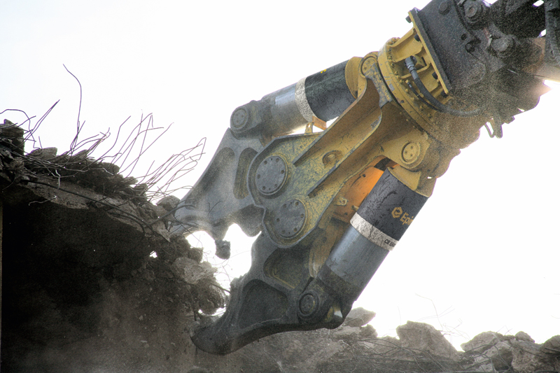 Geschäftsführer Robert Oettinger erläutert, es werde immer wichtiger, Fundamente ohne große Erschütterungen zu zerlegen. Mayer ergänzt: „Durch die Bauweise und die enorme Öffnungsweite der CB 5500 habe ich die Möglichkeit, selbst Fundamente aus sehr hartem Beton zu knacken. Die Arbeitszyklen sind schnell, die Leistung der Schere ist herausragend.“