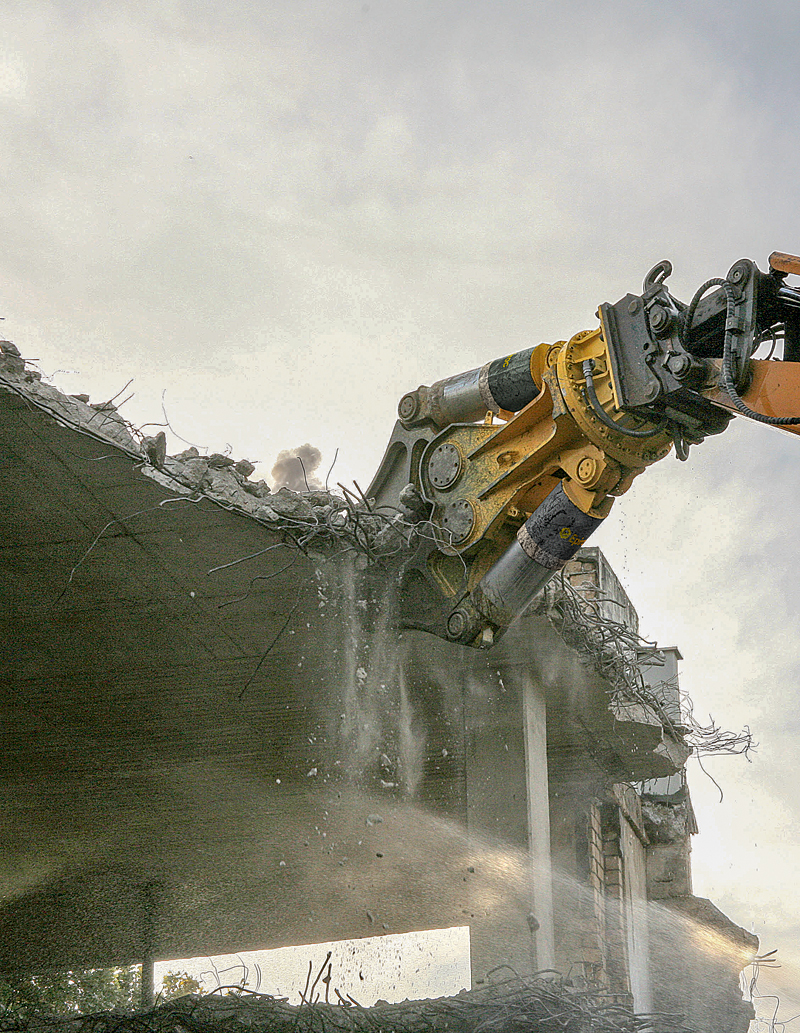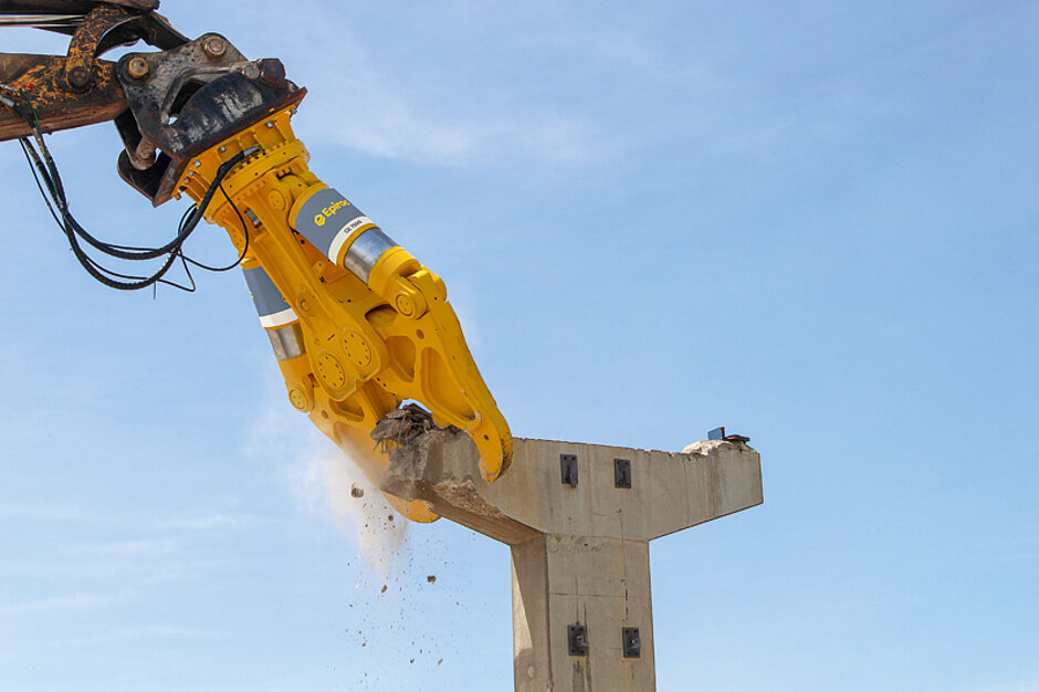 Concrete Buster mit ihren großen Maulweiten und hohen Brechkräften eignen sich besonders für den Abbruch dicker Grundmauern und erleichtern den Abbruch von Trägern sowie Schwerbeton in extremen Arbeitshöhen. Die CB-Modelle verfügen über zwei leistungsstarke Hydraulikzylinder, die mit ihrer nahezu konstanten Schließkraft eine maximale Produktivität versprechen. Die Hydraulikzylinder werden durch Kolbenstangenverkleidungen geschützt. Ein integriertes Eilgangventil ermöglicht schnellere Arbeitszyklen.