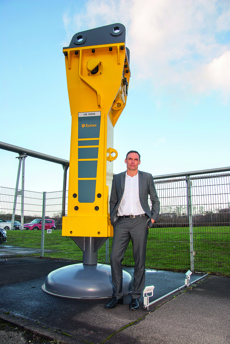 Auch in Europa mit Deutschland als einem der Kernmärkte hat sich das neue Unternehmen Epiroc über ein Umsatzwachstum von rund 20 % freuen können, so Stephan Ketteler. Damit sei man »auf jeden Fall zufrieden in diesen turbulenten Zeiten«. Den »Löwenanteil« des Umsatzes in der DACH-Region und in Benelux wird mit den Bagger-Anbaugeräten erwirtschaftet, die in Essen sowie im Schwesterwerk in Kalmar für den Weltmarkt produziert werden. Dazu kommen die Bohranlagen für die diversen Tunnelprojekte bei denen Epiroc mit seinem Produkten »ganz gut vertreten ist«, so Stephan Ketteler. Während im südschwedischen Kalmar seit 1993 Hydraulikhämmer mit einem Dienstgewicht von 55 kg bis 1 060 kg nach den Solid-Body-Konzept gefertigt werden, ist das ehemalige Krupp-Werk in Essen – wo 1963 der erste Hydraulikhammer der Welt überhaupt entwickelt wurde – der Standort für den Bau der Hydraulikhämmer im Bereich von 750 kg bis zu 10 t sowie für die Entwicklung bzw. die Produktion des gesamten Portfolios an Bagger-Anbaugeräten für den Weltmarkt. Neben den Hydrauklikhämmern samt Meißeln gehören dazu Abbruchzangen, Pulverisierer, Stahl- und Schrottscheren, Verdichter, Backenbrecherlöffel, Multigreifer und Hydro-Magnete.