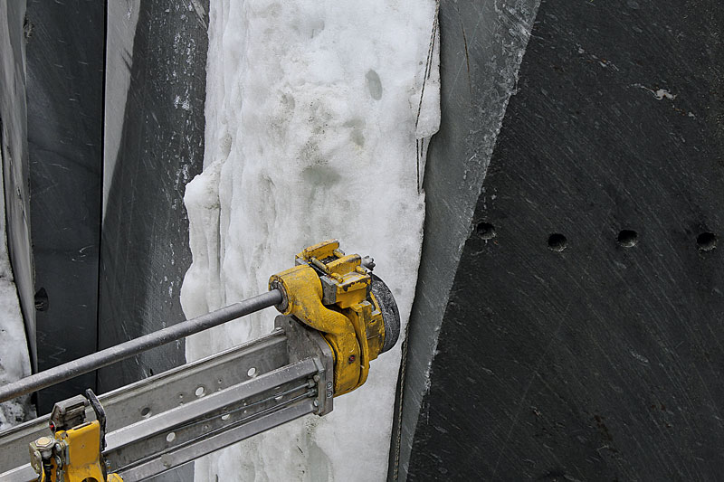 Die Wasserversorgung spielt in Vals im Winter eine große Rolle. Die Temperaturen können hier – 20 °C unterschreiten, dann ist Bohren mit Wasser undenkbar. Hierfür hat Epiroc das Water-Mist-System zur Wasservernebelung entwickelt. »Gerade in diesem Punkt war ich zunächst sehr skeptisch ob das System wirklich hält, was es verspricht. Doch das tut es, selbst bei zweistelligen Minusgraden haben wir keine Probleme«, betont Truffer.