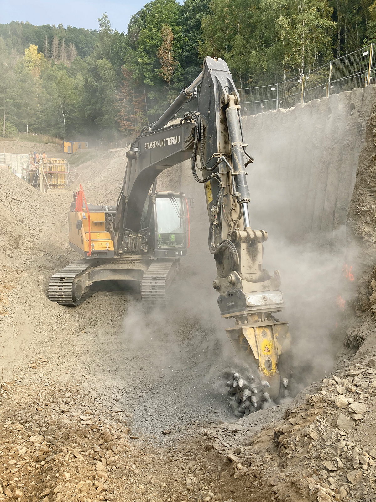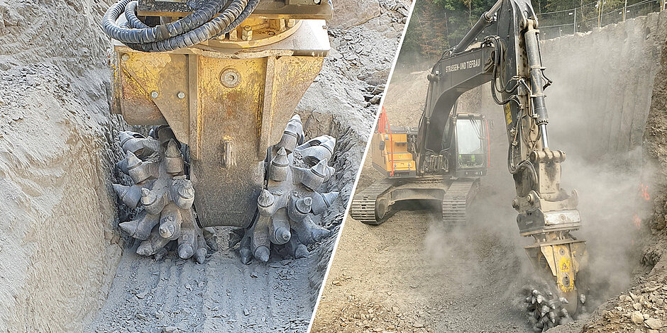 Die VC 2000 eignet sich insbesondere zur Profilierung harter Oberflächen wie Gesteins- oder Betonwänden, aber auch zum Aushub gefrorenen Erdreichs, von Weichgestein in Steinbrüchen und generell zu Abbrucharbeiten. Dabei überrascht sie neben ihrem robusten Gehäusedesign für höhere Betriebszeit und einer belastbaren Antriebswellenlagerung mit wartungsfreiem Gleitringdichtungssystem durch einen adaptierbaren Getriebemotor mit hohem Drehmoment für mehr Produktivität und längere Motorlebensdauer. Hochstabile Zahnräder für die optimale Energieübertragung sorgen ebenfalls für Zuverlässigkeit. Die VC 2000 kommt zusammen mit der Pro Bracket-Konsole auf den Markt, die laut Hersteller besonders im Grabenbau und mit vollhydraulischen Wechslern von Vorteil ist. Die Hydraulikschläuche wurden an der Rückseite im Zentrum des Verlängerungsarms der Fräse so in die Adapterplatte verlegt, dass sie wirkungsvoll gegen Eindringen von Material und Staub geschützt sind und dort einer geringeren mechanischen Belastung unterliegen.