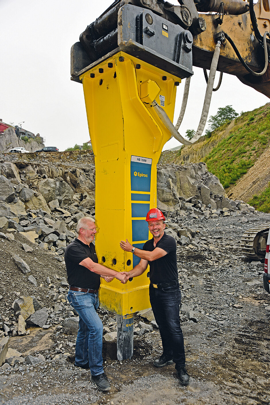 So ergibt sich ein starkes Netzwerk für eine vertrauensvolle Zusammenarbeit: Epiroc liefert mit dem neuen HB 7000 ein Produkt, das die Geschäftsführer von Mendiger Basalt vor allem mit der verbesserten Schmieranlage und dem IPS-System überzeugte. A.B.T. übernimmt die technische Beratung und liefert Support, um die hohe Gewinnungsleistung des Hammers mit maximaler Verfügbarkeit und Wirtschaftlichkeit zu nutzen.
