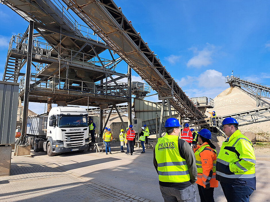 Am zweiten Tag spielte das Wetter wie erhofft mit, sodass die Exkursionen in zwei Rohstoffwerke der Firma Hülskens Barleben GmbH & Co. KG erfolgen konnten. Im Werk Rothensee begrüßte Geschäftsführer Dr. Claus Heidecke persönlich die Besucher und stimmte sie gut auf die nachfolgende Werksbesichtigung ein. Die Aufbereitungsanlage in Rothensee ist seit Anfang der 1990er-Jahre im Besitz der Hülskens Barleben. Aufbereitung und Gewinnung sind hier durch eine ca. 3 km lange Bandstraße verbunden. Kiese und Sande werden direkt vermarktet.