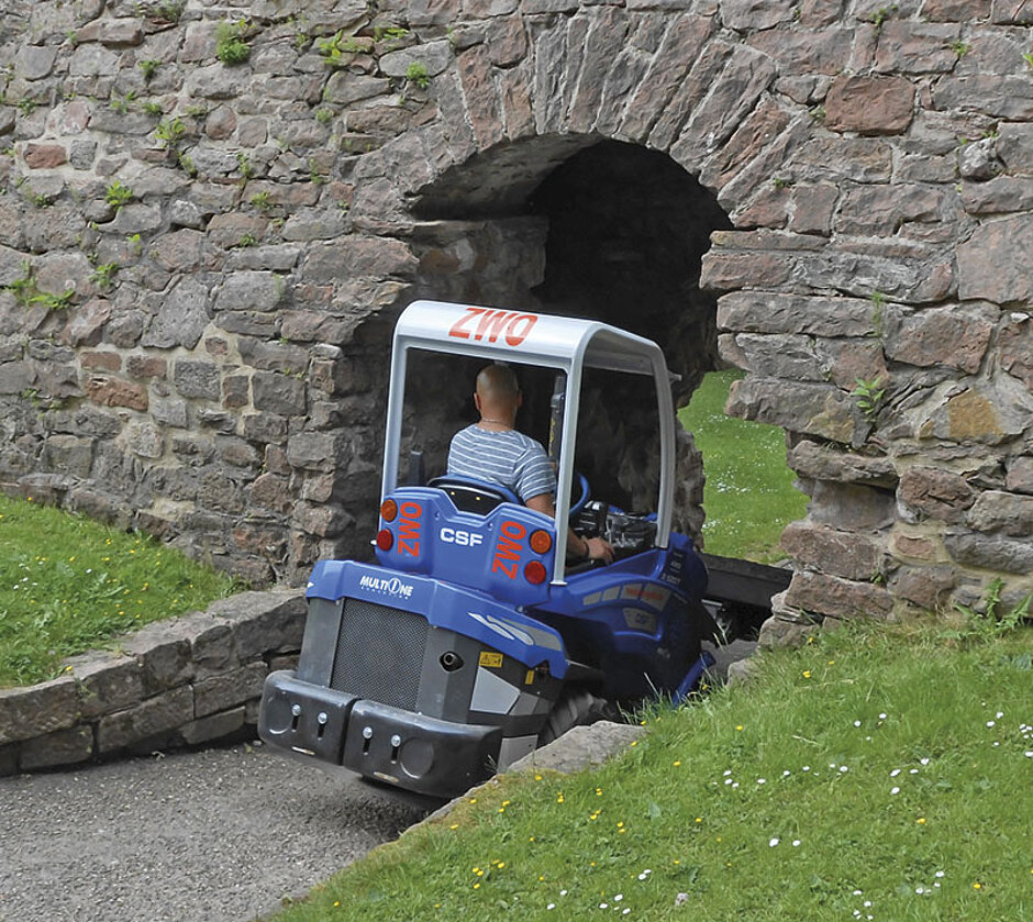 Domenico Dalia hat sich für seine Aufgaben im Rahmen des Umbaus eines Schlossflügels in Heidelberg für den MultiOne-Miniradlader 520 entschieden, der wegen seiner geringen Abmessungen und des Mittelgelenks auch unter den beengten Platzverhältnissen des Schlosses dort sehr manövrierfähig ist, wo andere Fahrzeuge nicht mehr hinkommen. Dank MultiOne war es für den staatlich geprüften Steinmetz und Restaurator möglich, Backsteine, Mörtel, Sand und andere Materialien für den Umbau vom oberen Schlosshof in den Innenhof des Schlosses zu transportieren und dabei auf einem kleinen und rund 500 m langen Weg, der für andere Arbeitsmaschinen zu eng und zu steil gewesen wäre, einen Höhenunterschied von rund 20 m zu überwinden. Nur dank der außergewöhnlichen Wendigkeit und Kompaktheit des MultiOne-Miniradladers wurde auch ein Hindernis wie ein enger Steinbogen in den Mauern des Schlosses zu einer bequemen Durchfahrt zum Arbeitsbereich. Unbeeindruckt ebenso von den Touristenmassen aus aller Welt, die sich täglich durch das Heidelberger Schloss bewegen, löste der kleine Italiener alle ihm vor Ort gestellten Aufgaben und transportierte das gesamte Material – an manchen Tagen mehrere Tonnen – problemlos an die Baustelle.Vielfältiges Anbaugerätekonzept
