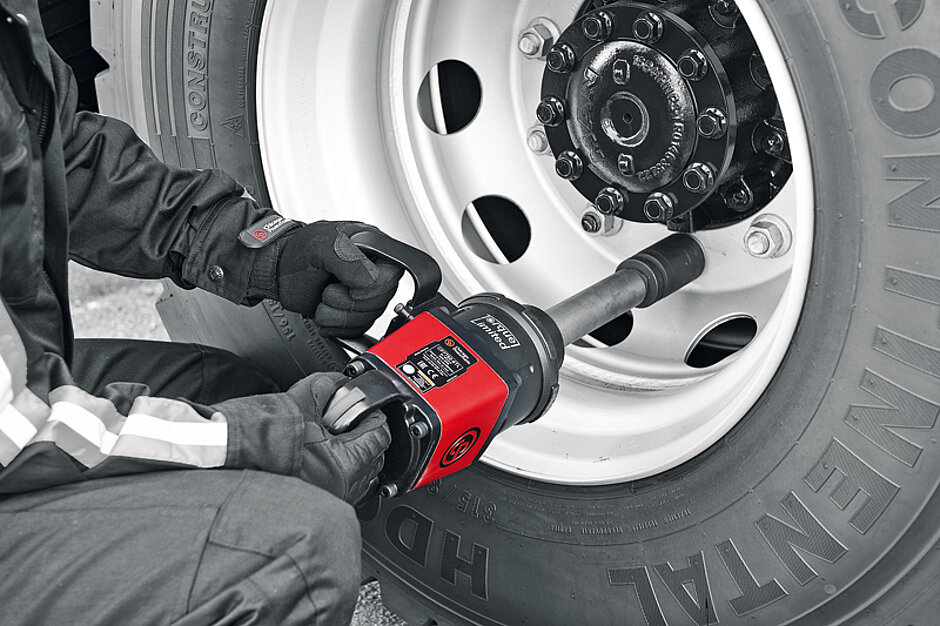 Mit dem 1"-Schlagschrauber CP7782TL-6 können Anwender in Werkstätten ein hohes Drehmoment beim Lösen von Schrauben erzielen, ohne aber im Rechtslauf zu überziehen. Die 1"-Schlagschrauber sind für den Radwechsel an schweren Fahrzeugen ausgelegt. Zum Lösen können Drehmomente von maximal 2 600 Nm erreicht werden. Im Rechtslauf ist das Drehmoment auf ca. 500 Nm begrenzt. Wer es kabellos mag, findet am NUFAM-Messestand von Chicago Pneumatic auch Schraubwerkzeuge und Schleifmaschinen mit Akkuantrieb. Der Akkuschleifer CP8350 etwa eignet sich für Reparaturen und Instandhaltungen an Nutzfahrzeugen sowie zum Schleifen und Trennen in Karosseriewerkstätten.