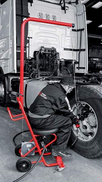 Der ergonomische Sitz CP87029 erleichtert Servicearbeiten an schweren Nutzfahrzeugen. Der »Ergoseat« erlaubt eine bequeme Sitzhaltung beim Radwechsel sowie bei Wartungsarbeiten an Lkw oder Baumaschinen und schont damit den Rücken des Anwenders.