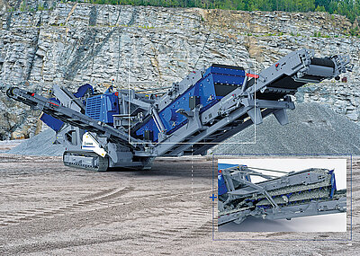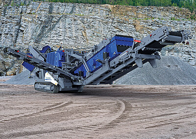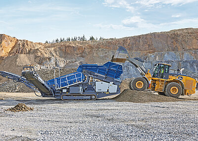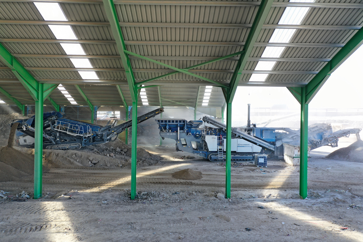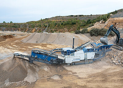 Für besonders kontaminiertes Abbruchmaterial kommt der Prallbrecher Mobirex MR 130i PRO im Zusammenspiel mit dem Grobstücksieb Mobiscreen MSS 802i EVO zum Einsatz. Dabei laufen 260 Tonnen pro Stunde über das Sieb, ein Drittel davon geht in den Brecher, der Rest wird zum Bau von Drainagen verwendet.