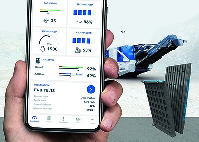 Alle Brechanlagen sind mit Spective Connect ausgestattet, das eine einfache Bedienung und Überwachung ermöglicht. So kann in Echtzeit auf wichtige Maschinendaten zugegriffen werden, ohne immer wieder an die Anlagen zu müssen und ganz egal, wo sich der Bediener auf dem Gelände aufhält. Ändert sich etwas an der Produktionskapazität oder beim Verbrauch der Anlage kann sofort reagiert werden.