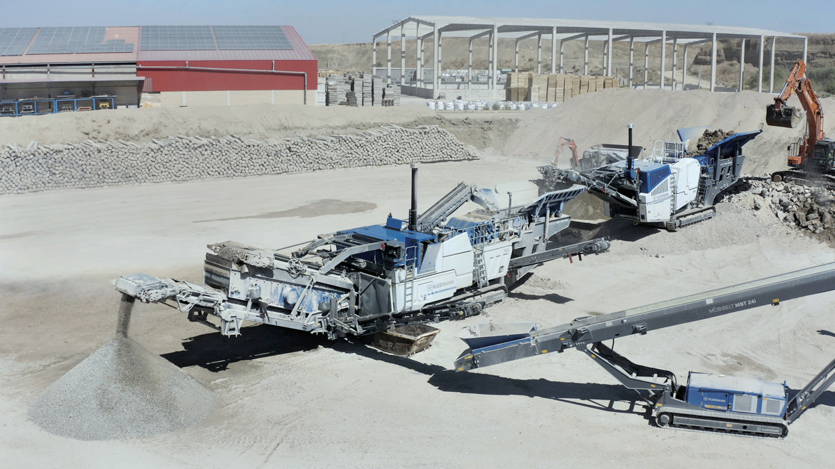 Die Anlagen werden auf dem Recyclinggelände von Reicicam in Madrid je nach Anforderung und Bedarf in unterschiedlichen Kombinationen eingesetzt. So ist der Backenbrecher Mobicat MC 120i PRO kombiniert mit dem Prallbrecher Mobirex MR 130i PRO ein kraftvolles Team, wenn es um die Verarbeitung von großem Aufgabematerial geht: Die beiden verarbeiten gemeinsam Materialien in Größen von bis zu 1200 mm und liefern ein qualitativ hohes Endprodukt. Der Output liegt bei bis zu 250 t pro Stunde. In der Kombination Backen- und Prallbrecher werden Endkörnungen von 0 bis 20 und 20 bis 40 mm produziert, je nach Belegung der Siebflächen.