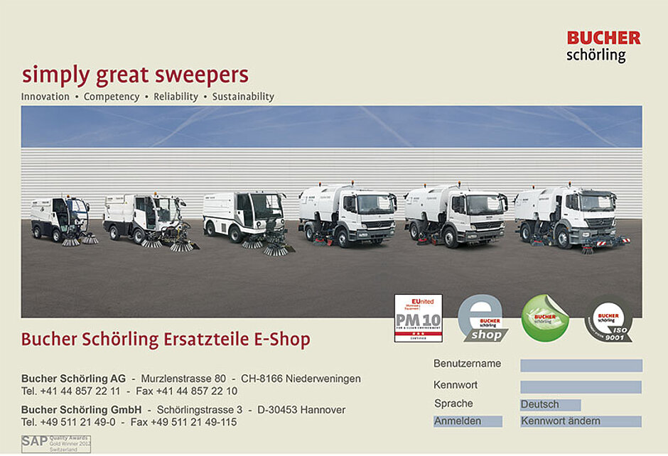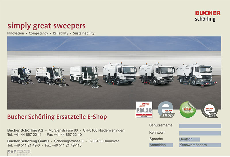 Verfügung. Zahlreiche Anwender haben sich auch bereits registriert. Überdies wurde die erfolgreiche Einführung dieses neuartigen Ersatzteilportals vor kurzem mit dem „SAP Quality Award 2012“ gewürdigt. Alljährlich honoriert SAP herausragende Leistungen von Kunden bei der Einführung von Business-Lösungen. In diesem Jahr prämierte SAP Schweiz in der Kategorie „Kleine und mittlere Projekte“ mit den Schwesterfirmen Bucher-Schörling AG und Bucher Landtechnik AG gleich zwei Unternehmen des Bucher-Konzerns für die Einführung ihrer neuen, kundenfreundlichen E-Commerce-Plattform.
