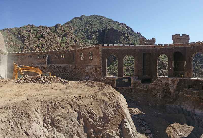 Das Burggebäude ist einer maurischen Festung in Spanien nachempfunden und war vom Bauherrn als Wohnhaus entworfen worden. Für die Außenwände wurden die aus dem Fels heraus gesprengten Steine verwendet, sie verleihen dem Gebäude ein besonderes Aussehen. Nachdem das Copenhaver Castle verkauft wurde, entschied sich der neue Eigentümer zu einem Umbau, bei dem die äußeren Wände im ursprünglichen Zustand bestehen bleiben sollten. Im letzten Oktober wurde ein Großteil des inneren Gebäudes entkernt, zudem musste das zentrale Fundament um bis zu 3,6 m im Granitfels vertieft werden. Hierbei waren rund 460 m³ im rosafarbigen, zum Teil verwitterten Granit abzubauen, wobei die Gesteinsfestigkeiten zwischen 80 MPa und bis über 160 MPa betrugen. Eine wahre Herausforderung für einen erschütterungsarmen Ausbruch bei dieser Gesteinshärte.