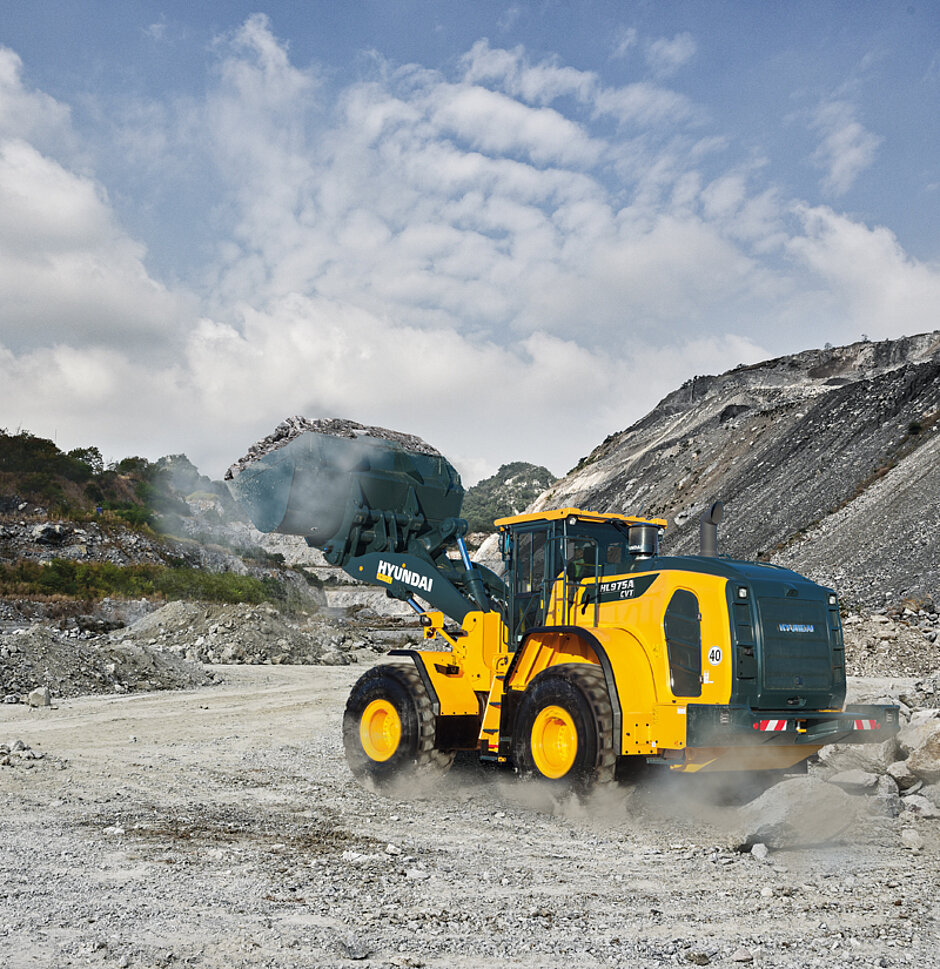 Die meisten Bediener schwerer Maschinen haben lange Arbeitsschichten. Um während dieser Zeit eine gleichbleibend hohe Leistung erbringen zu können, ist es wichtig, dass die Bediener sich wohl fühlen. Der Radlader HL975A CVT will eine deutlich verbesserten Kabinenkomfort bieten. Hyundai hat die Kabine so konzipiert, dass sie eine produktive, stressfreie Arbeitsumgebung bietet – sie ist sowohl komfortabel als auch geräumig ausgelegt und verfügt über moderne Technologie zur Geräusch- und Vibrationsreduzierung. Es wird ein Schallpegel von lediglich 70 dB erreicht. Eine optionale Türfernbedienung ermöglicht die ferngesteuerte Öffnung der Kabinentür. Der luftgefederte Sitz ist serienmäßig mit einer Heizung ausgestattet. Sitz und Armlehne können verstellt werden. Der 7"-Touchscreen-Monitor ist so optimiert, dass ein schneller und einfacher Zugriff auf Maschinenstatus und Überwachungsinformationen in Echtzeit möglich ist. Ebenfalls enthalten ist ein Audiosystem mit Bluetooth-, USB- und Aux-Eingang.