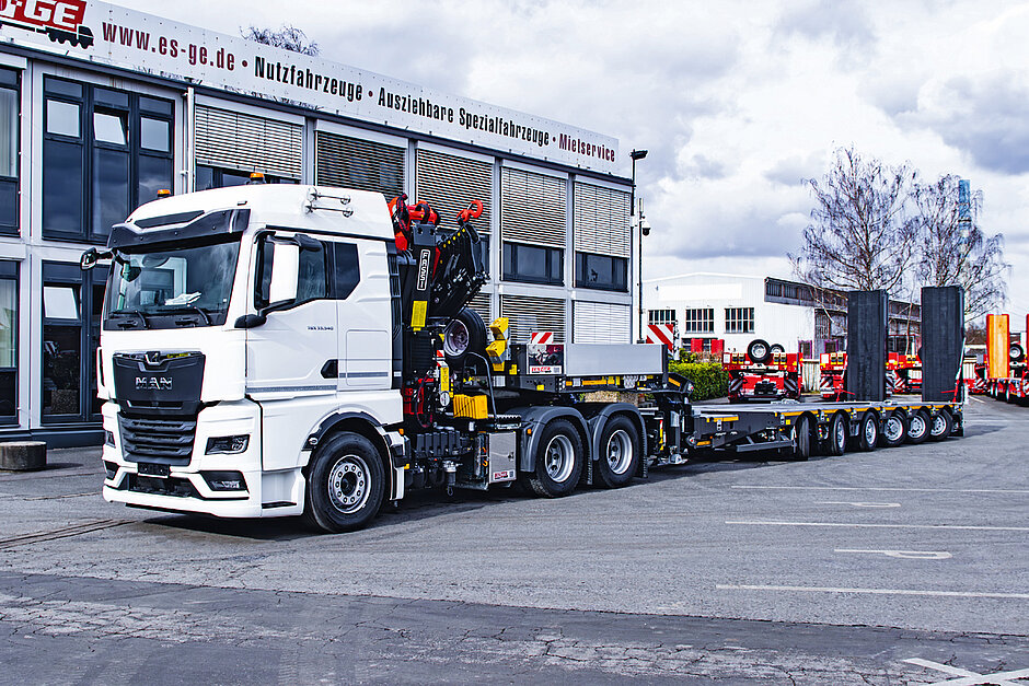 Als enger Partner von Faymonville und Topseller der Marke »Max Trailer« wird die ES-GE Neuheiten sowie bewährte Modelle aus dem Hause Faymonville präsentieren. Dazu gehören u. a. zwei Schwergewichte der Marke: Ein sechsachsiger »MultiMax« mit Pendelachsen sowie eine 1+3-Tiefbett-Kombination aus der Baureihe »GigaMax«. Ergänzend dazu können sich Fachbesucher auf Auflieger und Anhänger der Eigenmarke sowie auf Sattelzugmaschinen und Lkw mit Ladekran freuen, die sich bei der ES-GE insbesondere im Mietgeschäft bewährt haben. Dabei stehen praxisnahe Lösungen im Vordergrund, beispielsweise individuell aufgebaute Fahrzeuge mit Ladekranen, die für anspruchsvolle Einsätze im Bau- und Schwerlastsegment konzipiert sind. »Unsere Erfahrung zeigt, dass die Kundenerwartungen hinsichtlich Geschwindigkeit, Flexibilität und Informationsqualität weiter steigen«, erklärt Markus Hurdelhey »Wer heute investiert, erwartet mehr als nur ein gutes Produkt. Vielmehr geht es um ein durchdachtes Gesamtpaket, das sich unmittelbar und nahtlos in bestehende Prozesse einfügt. Genau das demonstrieren wir auf der Bauma – und freuen uns auf den Austausch mit unseren Kunden und Partnern.«