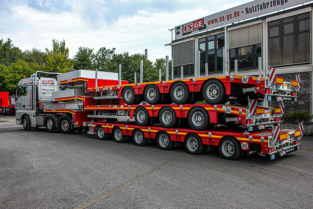 Partner der ersten Stunde: ES-GE aus Essen konnte die Entwicklung von Max Trailer mitverfolgen und als Vertriebspartner aktiv mitgestalten. Die Einführung standardisierter Fahrzeuge im Bereich der Schwer- und Spezialtransporte war 2012 ein Novum und wurde anfänglich vielerorts mit Skepsis betrachtet. Dennoch habe sich recht früh erkennen lassen, dass die Tochterfirma der Faymonville Gruppe mit ihrem Konzept goldrichtig lag. Über zehn Jahre hinweg habe auch die ES-GE über ihre Vertriebswege und die Vermietung maßgeblich dazu beigetragen, die Marke im Markt für Schwerlast-Nutzfahrzeuge zu etablieren. Für die Verdienste wurde das Team der ES-GE in der Vergangenheit ein ums andere Mal vom Hersteller ausgezeichnet. Nun folgte ein besonderer Ritterschlag.