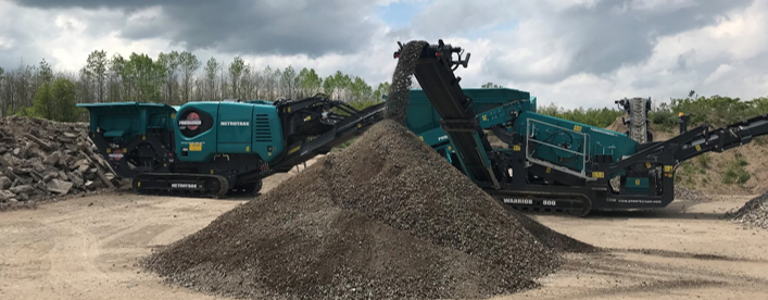 Als die Anlage nach der Münchener Messe dann auf dem Recyclingplatz der Firma ETB in Betrieb gegangen ist, hat sie aus dem Stand überzeugt. Zusammen mit der Grobstücksiebanlage Powerscreen Warrior 800 ein starkes Gespann ! Man schätzt den Vorteil, nicht mehr so viel Vorzerkleinerungsarbeit in die Betonrestmassen stecken zu müssen, was vorher zu einem erheblichen Kostenfaktor wurde. Zusammen mit der Powerscreen-Siebanlage stellt man ein hervorragendes Endprodukt her, welches den Vergleich mit der Prallmühle nicht scheuen muss. Durch das bessere Einzugsverhalten des Backenbrechers mit dem teilweise sehr groben Aufgabegut, wird gegenüber der alten kompakten 26t Prallmühle auch keine Output-Leistung vermisst. Wieder auf den Metrotrak zu setzen, ist einfach die richtige Entscheidung gewesen !