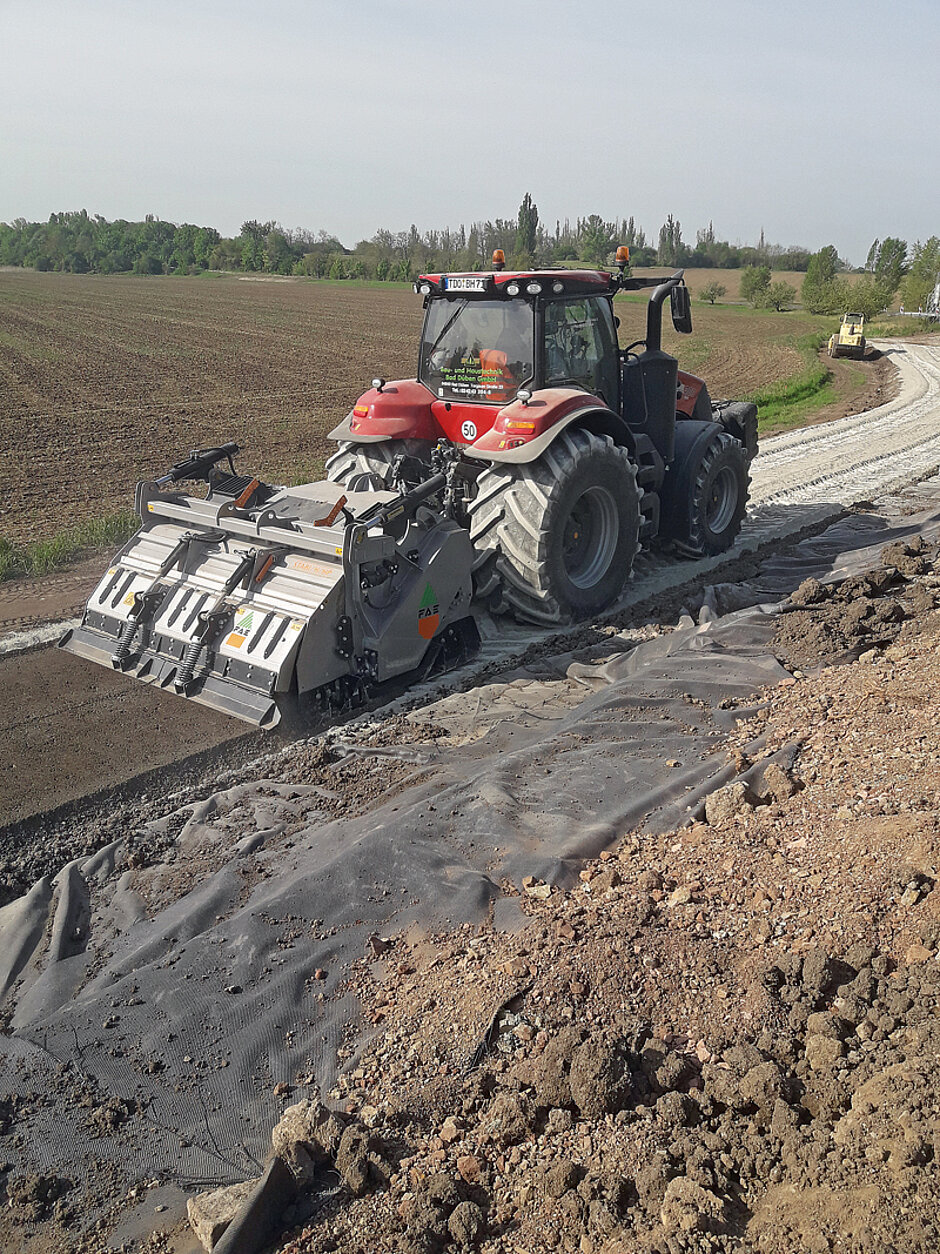 Zu den am meisten geschätzten Merkmalen der FAE-Fräse zählten nach Angaben der Mitarbeiter vor Ort ihre Robustheit, die immer guten Mischqualitäten und die Fähigkeit, auch steinige Böden zu bearbeiten. Die Fräse verfügt über eine Mischkammer mit variabler Geometrie eines beweglichen Rotors, wodurch nur der Fräsrotor in den Boden eindringt. Der bewegliche Rotor wird hydraulisch von der Traktorkabine aus gesteuert. Das Volumen der Mischkammer ist variabel ausgelegt: je größer die Arbeitstiefe, desto größer das Volumen. Im Vergleich zu einer Maschine, die mit dem Rahmen im Boden arbeitet, reduziert die Mischkammer mit variablem Volumen nach FAE-Angaben die notwendige Antriebskraft, was eine Reduzierung des Kraftstoffverbrauchs, eine Steigerung der Betriebsgeschwindigkeit und somit eine höhere Zeitersparnis zur Folge habe. Damit werde es möglich, den Boden bis zu einer Tiefe von 50 cm zu fräsen und dabei eine ausgezeichnete Mischqualität bei jeder Mischtiefe zu gewährleisten.