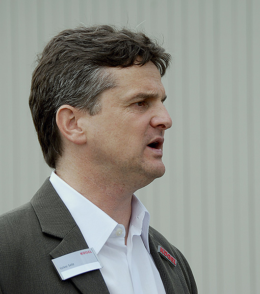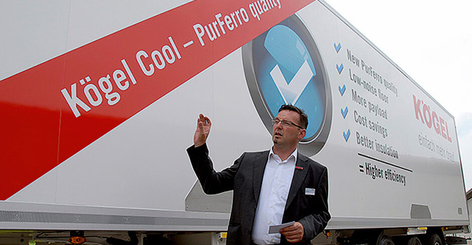 Von Michael WulfBei dieser sogenannten »IAA-Preview« in der Kneippstadt Bad Wörishofen zeigte sich die komplette Geschäftsführung von Kögel mit Thomas Heckel als Vorsitzenden und dessen Geschäftsführer-Kollegen Thomas Eschey (Technik und Produktion) und Jürgen Steinbach (Finanzen) äußerst optimistisch, mit den neu vorgestellten Produkten bereits im Vorfeld der IAA »für Furore sorgen zu können«. Diese Zuversicht rührt auch daher, dass Kögel auch in den ersten fünf Monaten dieses Jahres »kräftig zugelegt hat«, so Volker Seitz, obwohl der Markt in diesem Zeitraum um rund sechs Prozent zurückgegangen sei. »Wir hatten im letzten Jahr einen Marktanteil von elf Prozent und liegen aktuell bei etwa 20 Prozent«, sagte Volker Seitz. »Das heißt, wir haben unseren Wettbewerbern Marktanteile abnehmen können.« Für Volker Seitz liegen die Gründe für diese Entwicklung klar auf der Hand. »Wir haben unsere früheren Schwächen behoben. Die Kunden honorieren die Qualität und Zuverlässigkeit unserer Produkte. Und wir haben unsere Produktpalette erweitert.« Das habe dazu geführt, dass Kögel »den Absatz vervierfacht und den Umsatz verfünffacht« und sich die Zahl der Mitarbeiter um gut 150 erhöht habe seit der Übernahme durch Humbaur. »Im vergangenen Jahr erwirtschafteten wir einen Umsatz von rund 250 Millionen Euro«, so Seitz. »Für dieses Jahr haben wir uns zum Ziel gesetzt, 14000 Einheiten zu produzieren und den Umsatz auf 300 Millionen Euro zu erhöhen.«