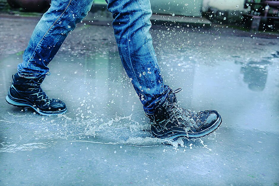 Für Arbeiter, die ständig auf Sand, Kies oder Matsch im Einsatz sind, hat Elten »toughe Jungs« am Start: Die Sicherheitsschuhe der Renzo-Serie sind besonders robust und hart im Nehmen. Ihre grobstollige Sohle bietet guten Stand auch auf unebenen Böden, und abgeschrägte Profilrippen verhindern, dass sich Matsch und Dreck an der Sohle festsetzen. Die robusten Obermaterialien aus Rindleder sind leicht zu reinigen und bieten kaum Angriffspunkte für Schmutz, während ein abriebfester Spitzenschutz vor allzu schnellem Verschleiß schützt. Die Renzos trumpfen auch mit speziellen Schutzfunktionen, die auf unterschiedliche Arbeitsbereiche zugeschnitten sind. Der Renzo Biomex ESD S3 ist mit einer Umknickschutz-Technologie ausgestattet, die hilft, Verletzungen der Sprunggelenke durch Umknicken vorzubeugen. Eine Manschette stabilisiert dabei das Sprunggelenk, ohne dabei die natürlichen Bewegungen des Fußes einzuschränken. In Bereichen, in denen herabstürzende oder umkippende schwere Gegenstände eine besondere Gefahr darstellen, bietet Renzo D30 S3 Schutz und verfügt über eine Manschette aus schockabsorbierendem Hightech-Material als Mittelfußschutz, die die Aufprallkräfte reduziert. Der Fußrücken wird so zusätzlich vor Verletzungen geschützt.