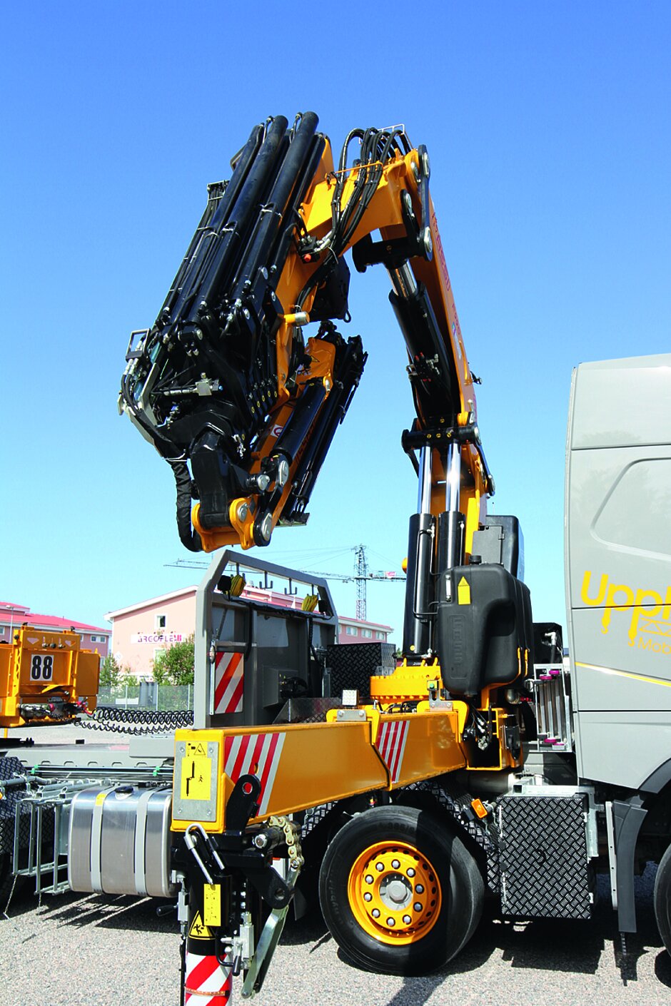 Binsell ist der größte Verleihstützpunkt für Liebherr-Krane im Großraum Stockholm. Im Umfeld des Gelbtons dieser Marke verliert sich im Juli beinahe ein Fahrzeug, das nicht hierhin passen will: Ein in Grau auftretender Volvo-Vierachser des Typs FH 500 mit leuchtend Gelb lackierten Rädern und einem hinter dem Fahrerhaus montierten, ebenfalls in Gelb gehaltenen, Fassi-F990-Ladekran – eines der Fahrzeuge der Firma Upplandskranar. Geschäftsführer und Inhaber Fredrik Wennberg arbeitet seit Jahren eng mit Binsell zusammen.