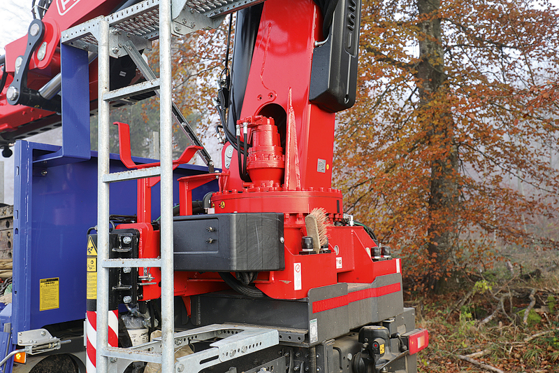 Mit dem vor wenigen Wochen ausgelieferten neuen Truck kann Grundmann sich beim Auslegen der Fahrbohlen etappenweise vorarbeiten, ohne den Kransitz zu verlassen. Möglich wird diese Arbeitsweise durch »Drive by Fassi«, ein Merkmal, das der Kranspezialist aus Italien mit Volvo entwickelt und kurz zuvor vorgestellt hat. Es erlaubt, bis zu einer Geschwindigkeit von 10 km/h moderne Volvo-Trucks auch außerhalb der Fahrerkabine mit einer Fernbedienung zu steuern.