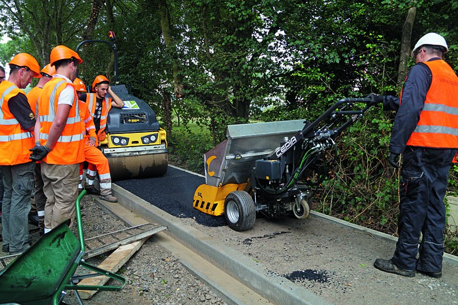 Mit der Heiß- oder Kaltasphaltverteilfunktion unterstützt die Cepia-Maschine eine gleichmäßige Verteilung ohne einen »Druckpunkt« zu erzeugen, der mit dem Umkippen einer traditionellen Schubkarre verbunden wäre. Eine präzise Einstellung ermöglicht unabhängig von der Neigung eine konstante Höhe auch bei Gräben oder Böschungen. Mit Cepia bietet Secmair ein vierfaches Volumen im Vergleich zu einer Standard-Schubkarre. Darüber hinaus soll sich der Zeitbedarf, insbesondere für Schotterarbeiten, erheblich reduzieren. Beim Auftragen von Heiß- und Kaltasphalt bleibe, so Secmair, die Produktivität – verglichen mit traditionellen Ansätzen – gleich, aber die Anzahl der Arbeiter vor Ort könne deutlich gesenkt werden. tü §