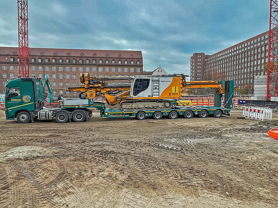 Auch ist der »MultiMax«-Satteltieflader teleskopierbar, was seine Grundlänge von 11 500 mm auf insgesamt 16 100 mm erweitern lässt. Dass der Semi-Tieflader mit einem maximalen Lenkeinschlag von 55° der Zugmaschine wie am Schnürchen folgt, wird dem Fahrer im Alltag das Leben sicherlich erleichtern. All diese Eigenschaften sorgen dafür, dass das Dominik-Team selbst schwer zugängliche Baustellen der Großstadt erreicht. Bei Faymonville fühlt sich Patrice Dominik in jedem Fall gut aufgehoben. »Wir vertrauen den Produkten und dem Service bereits jahrelang. Das Gesamtpaket stimmt für uns.« Und die Entscheidungsträger bei Dominik gehen weiterhin proaktiv heran an die Zukunftsplanung ihres Familienunternehmens. Denn ein neues Dreiachs-»MegaMax«-Tiefbett samt Einachs-Dolly von Faymonville kam jüngst zusätzlich noch in den Fuhrpark hinzu – natürlich mit Einzelradaufhängung. Auf berlinerisch klingt das positive Gesamtfazit so: »Dit is jebongt!«s
