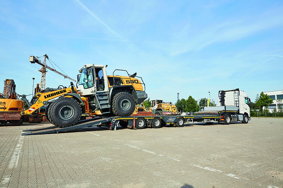 Jörg Gerl zurrt die letzten Verspannketten an, die einen Bagger für den nächsten Transport auf dem Tieflader fixieren. Dann geht’s für ihn wieder auf die Straße. Zufrieden ist der 56-Jährige über das hohe Maß an Flexibilität, die er mit seinem Tieflader erreicht. »Auszug und Mulde ermöglichen uns, längere bzw. höhere Maschinen bis zu einer Höhe von 3,4 m zu transportieren.« Und genau darauf greift er wenig später zurück, als ein weiterer Bagger vom Firmensitz in Seddiner See, südlich von Potsdam gelegen, zu einer Baustelle befördert werden muss. »Die Alueinleger in der Radmulde lassen sich in zwei Stufen einfach herausnehmen und beiseite tragen. Diese Option ermöglicht uns, Bagger mit einer geringen Bodenfreiheit zu versenken.« §