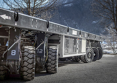 Die bewährte Achstechnologie ist für den Einsatz bei schwierigen Strecken- und Geländeverhältnissen ausgelegt. Ein Gesamthub von 600 mm sorgt für einen maximalen Ausgleich zwischen den einzelnen Achsen. Die Pendelbewegungen fangen Unebenheiten auf und halten das Fahrzeug stabil im Gleichgewicht.