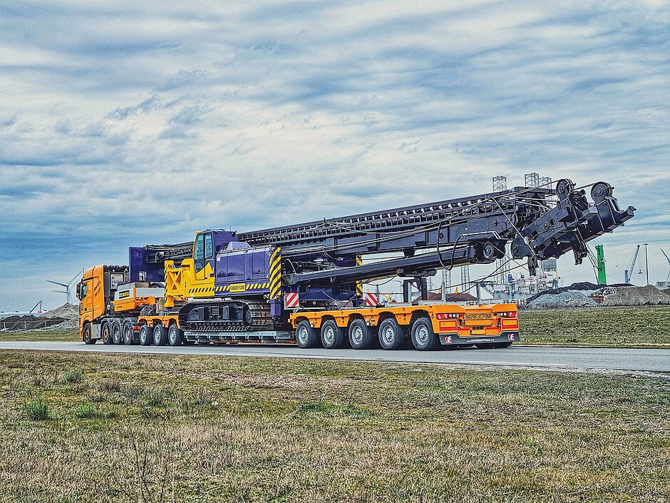 Das vordere Fahrwerk ist im Schwanenhals integriert, was dazu beiträgt, die Gesamtzuglänge kompakt zu halten und gleichzeitig die Nutzlast zu erhöhen. Der Schwanenhals ist abkoppelbar, sodass bereifte Maschinen und Kettenfahrzeuge einfach und schnell von vorne beladen werden können. ZTZ Logistics bietet logistische Gesamtlösungen und kümmert sich um Zoll, Lagerung, Wartung, Montage/Demontage, Reinigung und Lackierung, Versand und Transport. ZTZ Logistics verfügt über das nötige Fachwissen, um außergewöhnliche Aufgaben zu bewältigen, wenn die zu transportierenden Güter besonders schwer, breit, hoch oder lang sind. d