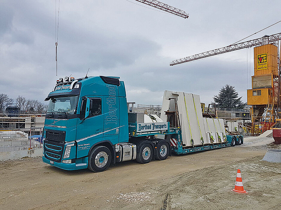 Mein Vater war ein Visionär. Er spürte schon damals das Bedürfnis, sich von anderen Betrieben in der Region abzuheben und neue Wege zu gehen«, erklärt Xavier Berthod die Gedankengänge des Firmengründers. Berthod Senior erkannte im Angebot von Faymonville die Produkte, die ihm bei künftigen Anfragen seiner Kundschaft helfen würden. Als erstes Fahrzeug übernahm man 1992 einen 2-Achs-Plateau-Auflieger mit einem 6 m langen Auszug in der Mitte und 1,5 m hinten. Xavier Berthod blickt zurück: »Unsere Kunden waren sehr zufrieden. Denn dank der neuen Technik konnten sie ihre Dienstleistungen erweitern und neue Lösungen anbieten. Das betraf beispielsweise Transportmöglichkeiten für lange Stahl- oder Holzrahmen oder auch Aluminiumrohre.«