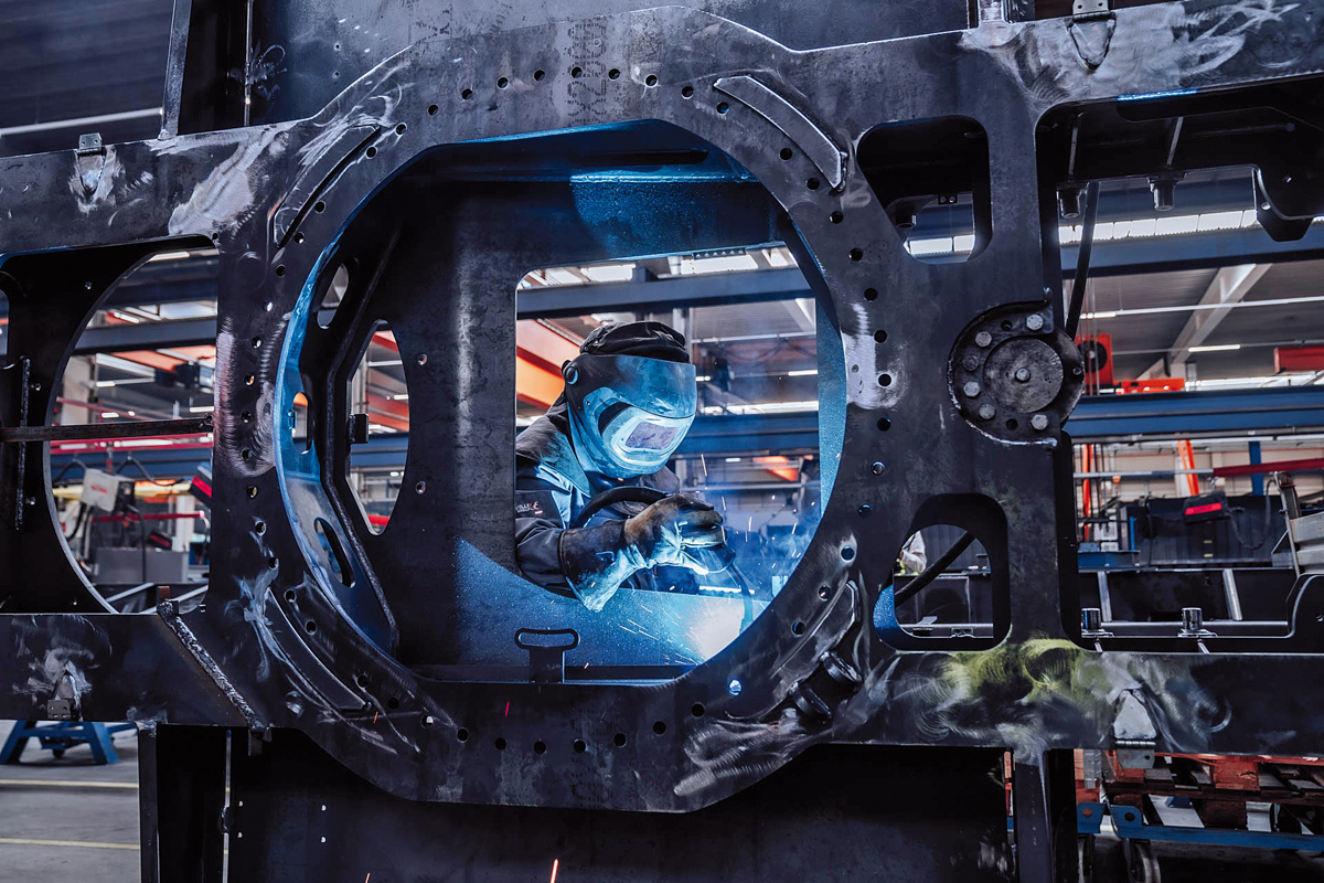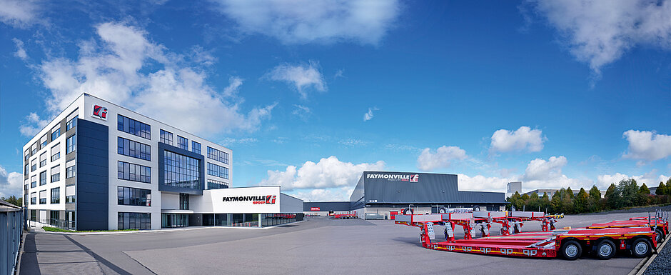 Ein Alleinstellungsmerkmal, das Eindruck hinterlassen hat, ist die Fertigungstiefe: Bei Faymonville wird alles »vom ersten Blech« bis zum fertigen Tieflader im eigenen Haus hergestellt. Seine Lösungen für Schwerlast- und Spezialtransporte entwickelt und fertigt Faymonville an insgesamt fünf Produktionsstandorten in Luxemburg, Belgien, Polen und Italien. Auf einer Gesamtproduktionsfläche von 175 000 m2 hat Faymonville eine ganz eigene Welt geschaffen. Sichtbar werden die »Eigenarten« beispielsweise an den einzelnen Fertigungsstationen. Seien es Schweißarbeiten, das Zusammensetzen einzelner Komponenten, das Lackieren oder die Arbeit an der CNC-Fräse – die einzelnen Arbeitsschritte greifen fließend ineinander und zeugen von guter Fertigungsqualität.