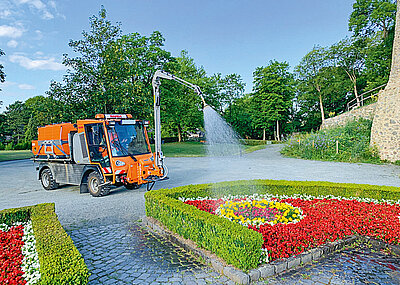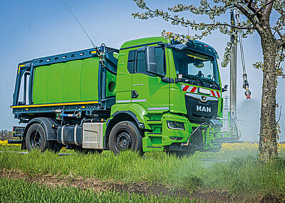 Das System besitzt eine automatische Regelung der Wassermenge und des Brenners je nach Ausbringgerät, somit kann eine effektive Arbeitsweise ermöglicht werden. Der Brenner geht bei kurzen Arbeitspausen automatisch in den Stand-by-Modus, um ebenfalls effizient genutzt zu werden. Die installierte Anwendung auf dem Messefahrzeug in Nürnberg ist ebenso mit einem Gießarm ausgestattet, um die Doppelnutzung besser zu veranschaulichen. Das Arbeiten im Gießmodus ist voll regelbar mit Mengenregulierung und Dosierzähler 70 l/min bei 5 bar Wasserdruck möglich. Alternativ auch mit einem Schwemmbalken bei 70 l/min und 50 bar. §