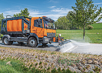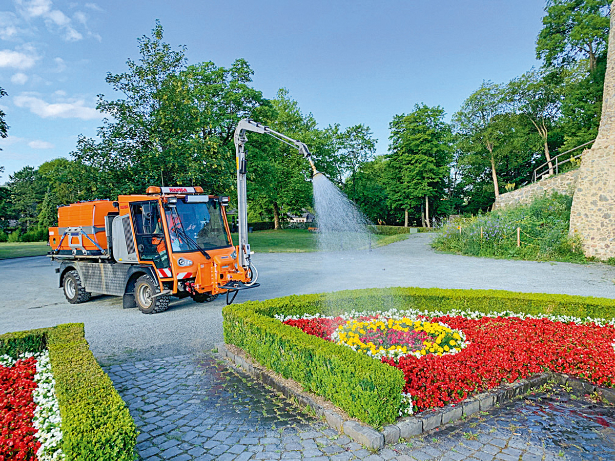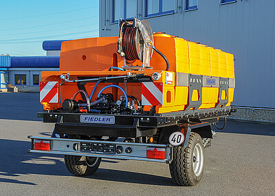 Mit der Gießarmbaureihe FGA mit einer Auslageweite von 2,5 m bis 6 m bietet Fiedler den ersten vollelektrischen Gießarm mit proportionaler CAN-BUS-Steuerung auf dem Markt. Alle Bauteile sind komplett aus Edelstahl. Der Vorteil gegenüber konventioneller Varianten liegt in der genauen Steuerung, mit welcher der Arm auch bei hoher Auslageweite die Bewässerung punktgenau ermöglicht – ruckartiges Verhalten oder Nachlaufen des Arms gehören der Vergangenheit an. Der Schwenkbereich vor dem Fahrzeug liegt bei 270°, so sind auch Bereiche neben der Fahrer- und Beifahrertür erreichbar.d